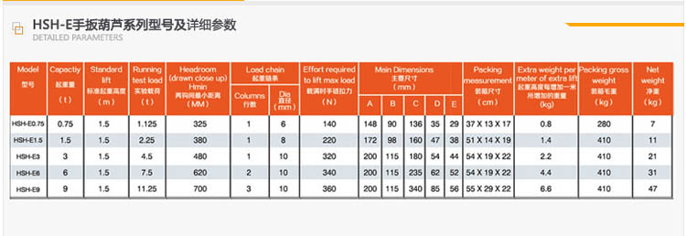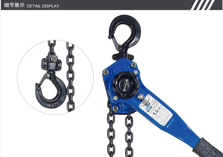 1.高強度軟吊鉤,帶安全卡扣止鎖夾。2.鋁合金手輪,手感舒適,重量輕。3.長軸三點支撐,傳動平穩,抗沖擊載荷高。4.手板設計加強筋,提高抗摔變能力。5.合理的手板與機體鏈接結構,空載靈活。6.敞開式導鏈機構,作業環境適應性強。7.采用整體軸承,拆裝、維修方便。8.設計棘輪襯套,提高制動可靠性。